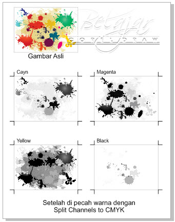 Ada yang bertanya pada Forum Mas Bero Anggra Kishomoto tentang pecah warna raster (maksudnya mungkin sparasi warna), aku sependapat dengan komentar jawaban dari Bang Choesny seperti ini "Sebenarnya tidak dibutuhkan software tertentu" nah ini aku ada Tips dan trik untuk Mas Bero sekalian yaitu tentang Pecah Warna Sparasi dengan Fitur Split Cannels to CMYK pada CorelDRAW, mungkin ini bisa membantu .....